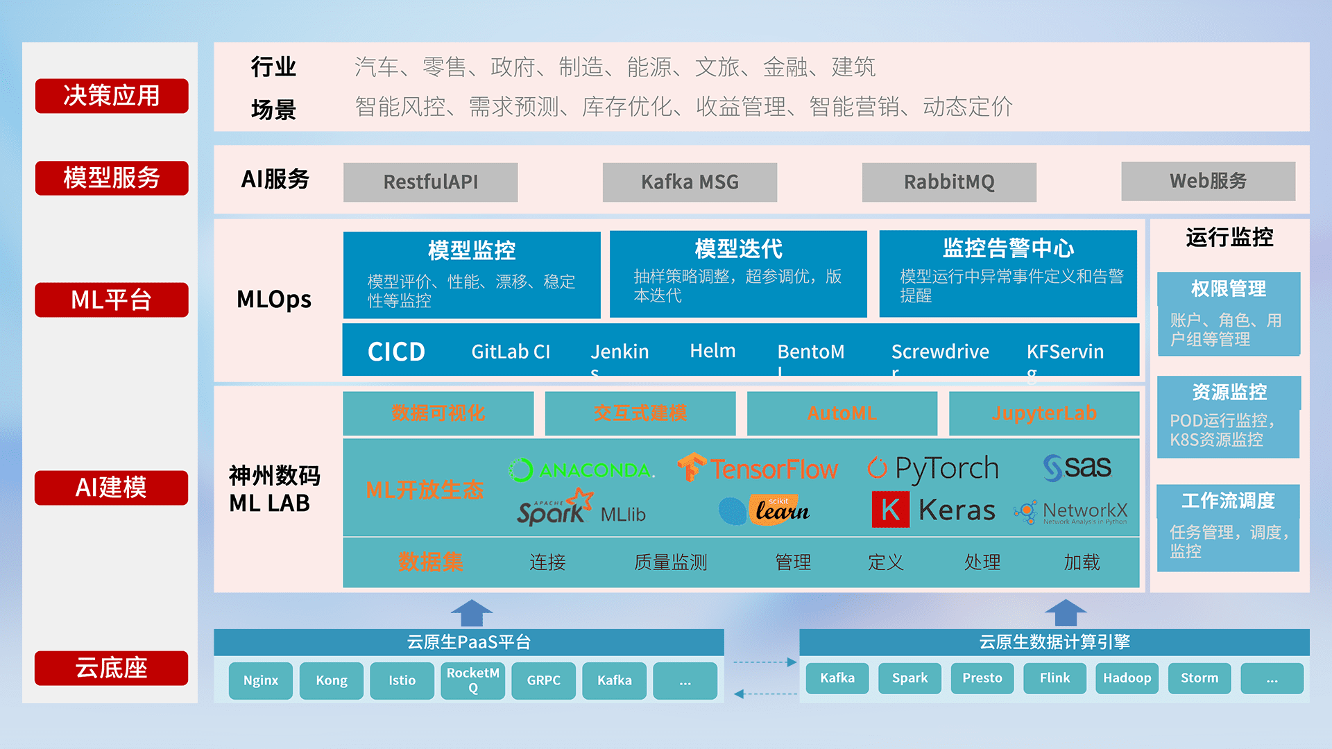 数据+模型双引擎驱动,,,面向智能服务场景,,,快速灵活利用AI技术,,,,支持业务决策,,,,助力企业智能化转型破局。。