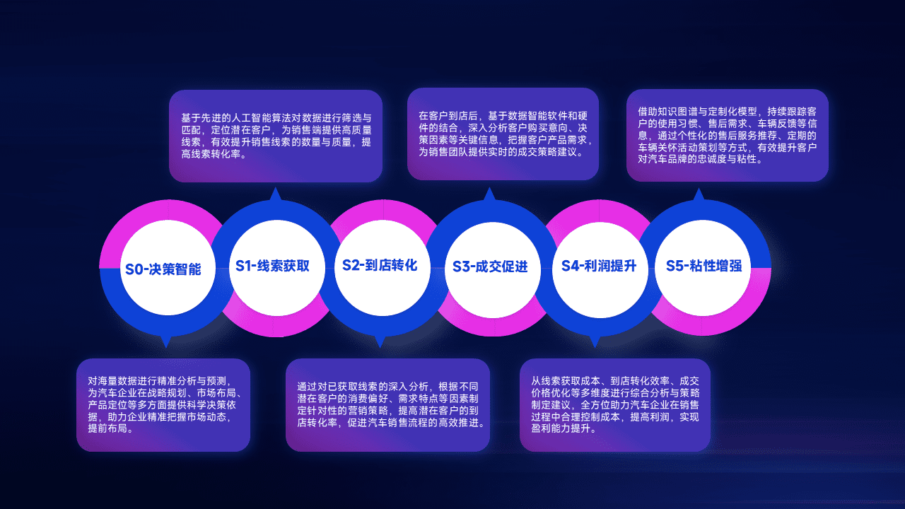 通过拓宽潜在客户来源、、优化线索分配并提高到店转化率,,,以增强销售效率。。。。同时,,,利用线索数据不断优化分析模型,,,有效提升转化率,,,扩大营销影响力。。